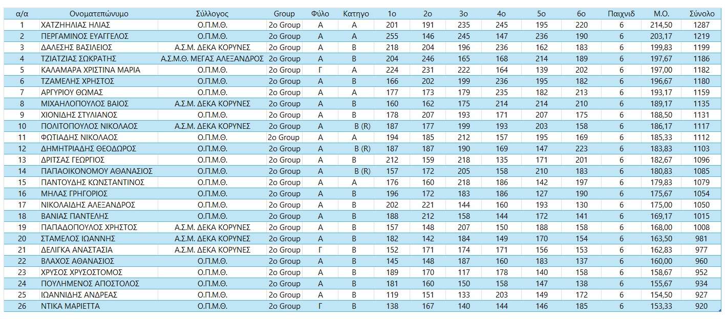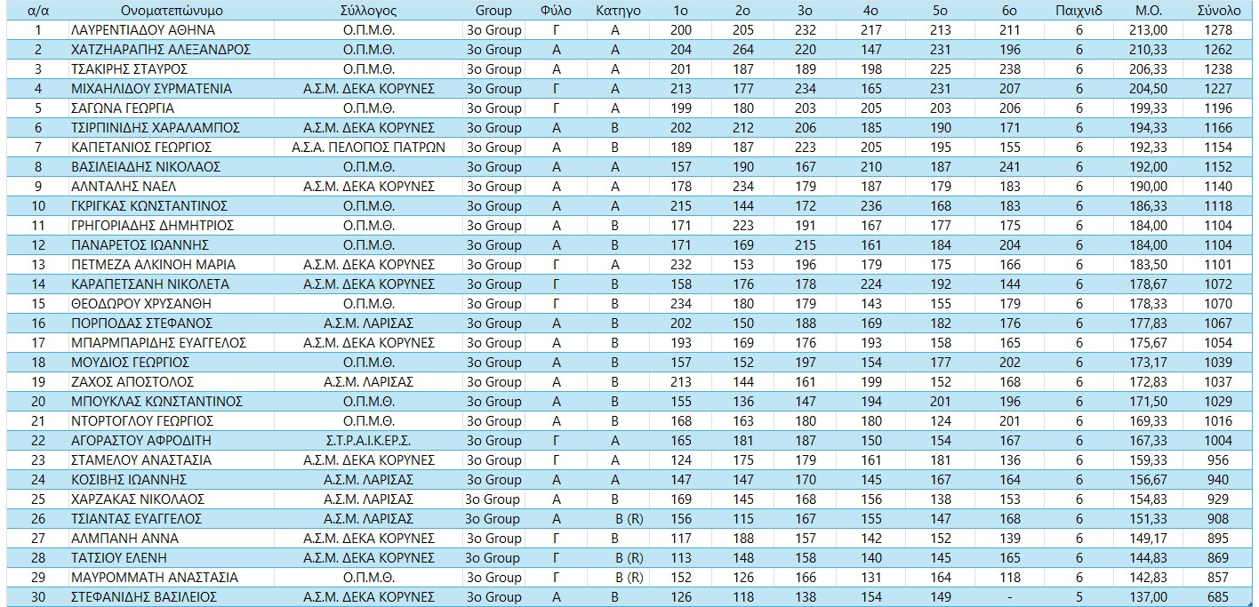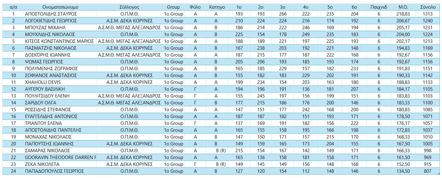 Pincity Bowling Bronze1 Προκήρυξη Αποτελέσματα Group 1 Group 2 Group 3 Τελικά Αθλητών Τελικά Αθλητριών